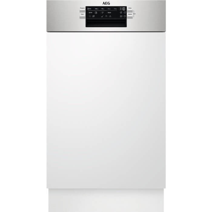 Aeg FEE73517PM beépíthető keskeny mosogatógép, 45 cm, kezelőpaneles, 10 teríték, MaxiFlex fiók, ExtraHigiénia, XtraPower, SoftGrip, 44 dB(A) (2 év jótállás fogyasztónak)
