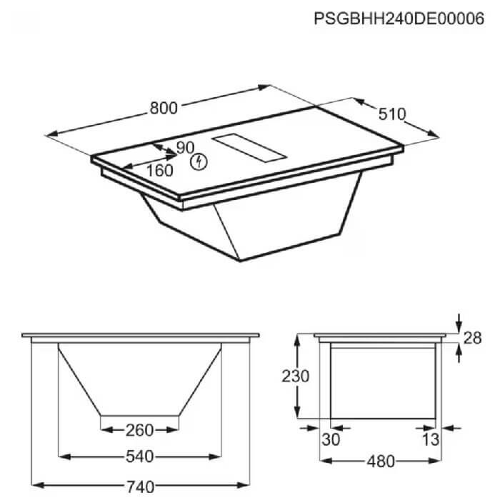 AEG TH84CC23CZ beépíthető indukciós főzőlap beépített páraelszívóval, 80 cm, 4 indukciós zóna, Bridge funkció, SaphirMatt®, Booster, 630 m3/h elszívási telj. (3 év jótállás fogyasztónak)