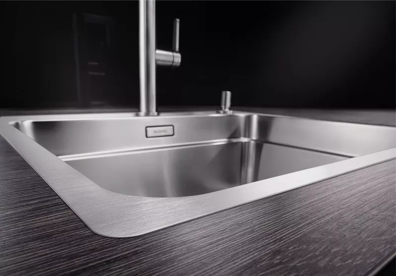 -elegáns, lapos perem (hagyományos módon beépítve a mosogató pereme kevesebb mint 1 mm-t emelkedik ki a munkalapból)