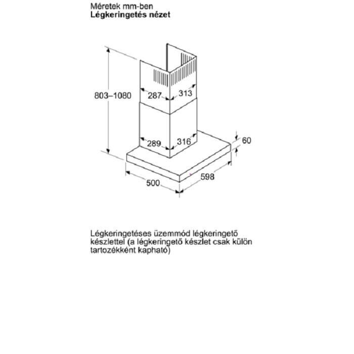 -méretek belső keringtetéses üzemmódban (szélesség x magasság x mélység): 598 mm x 803-943 mm x 500 mm