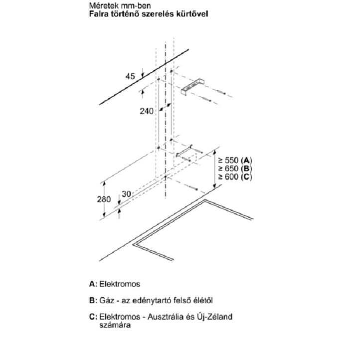 Bosch DWB63BC30 fali kürtős páraelszívó jellemzői