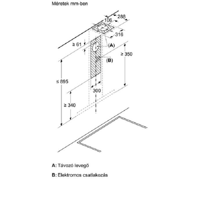 -méretek légkivezetéses üzemmódban (szélesség x magasság x mélység): 898 mm x 635-895 mm x 500 mm