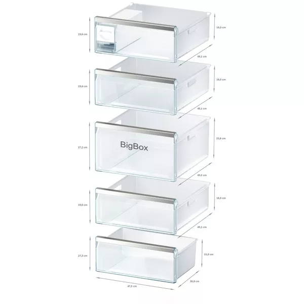 -BigBox fagyasztófiók: extra magasságú fagyasztófiók a mélyhűtő dobozok vagy nagyméretű fagyasztott ételek, például torta vagy pizzák praktikus tárolására