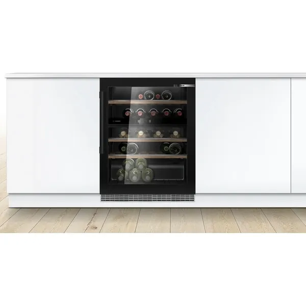 Bosch KUW21AHG0 beépíthető borhűtő, fekete, 82 cm, 120 l - 44 palack, elektronikus vezérlés, pult alá építhető (3 év jótállás fogyasztónak)