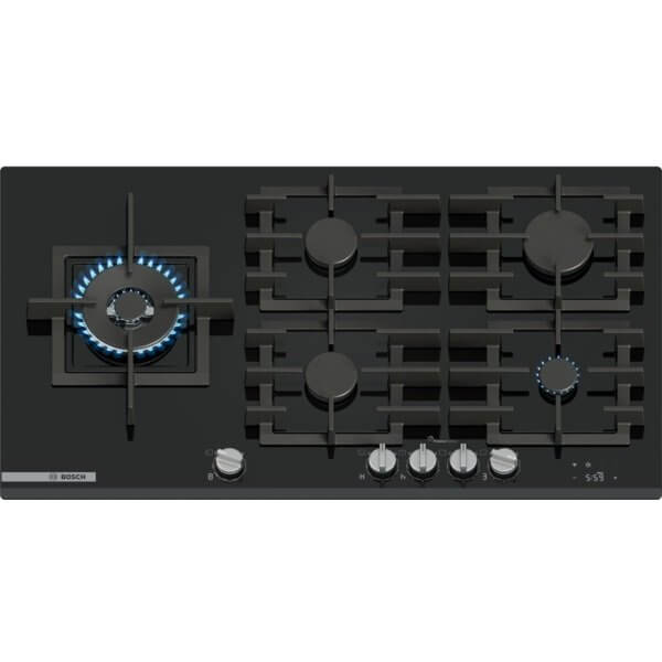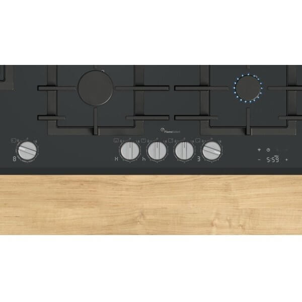 Bosch PRS9A6H40 beépíthető gázfőzőlap, 90cm, WOK, üveglapos, WIFI, elölgombos vezérlés, FlameSelect, szikragyújtás, öntöttvas rács (3 év jótállás fogyasztónak)