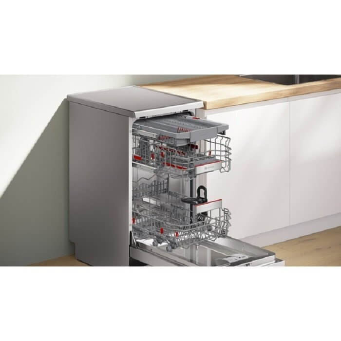 Bosch SPS6EMI21E keskeny mosogatógép, 45 cm, nemesacél, 10 teríték, 44 dB(A), Home Connect, ExtraDry, VarioDrawer Pro, Silence program (3 év jótállás fogyasztónak)
