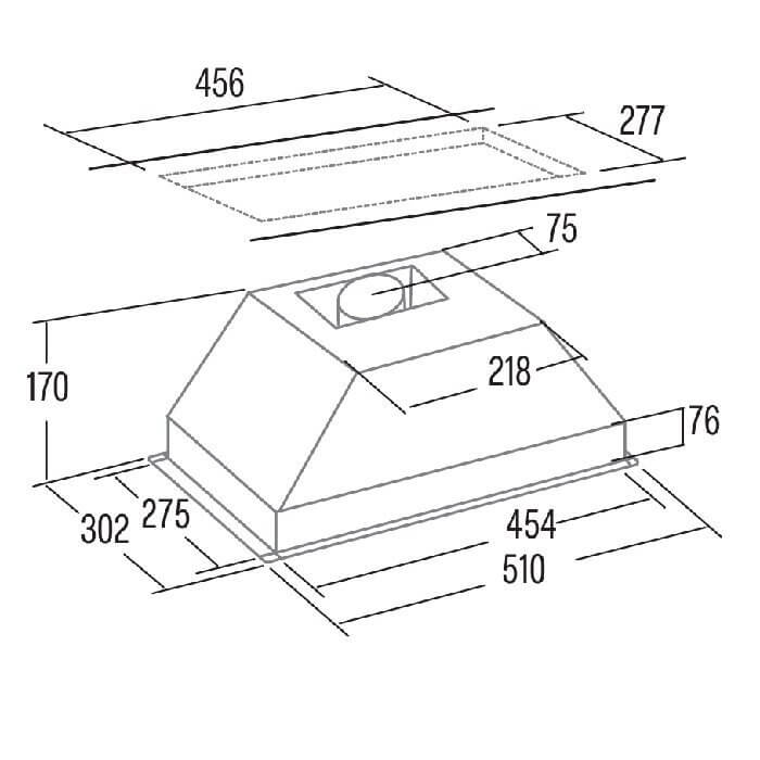 -Kivezetett üzemmód: a légtechnikai rendszer teljes hossza rendelkezzen azzal az áteresztő képességgel (megfelelő keresztmetszettel) amelyet a páraelszívó gyári csatlakozó csonka meghatároz. A nyomvonal kialakításánál a lehető legrövidebb, szűkítés-mentes útvonal kialakítása javasolt.