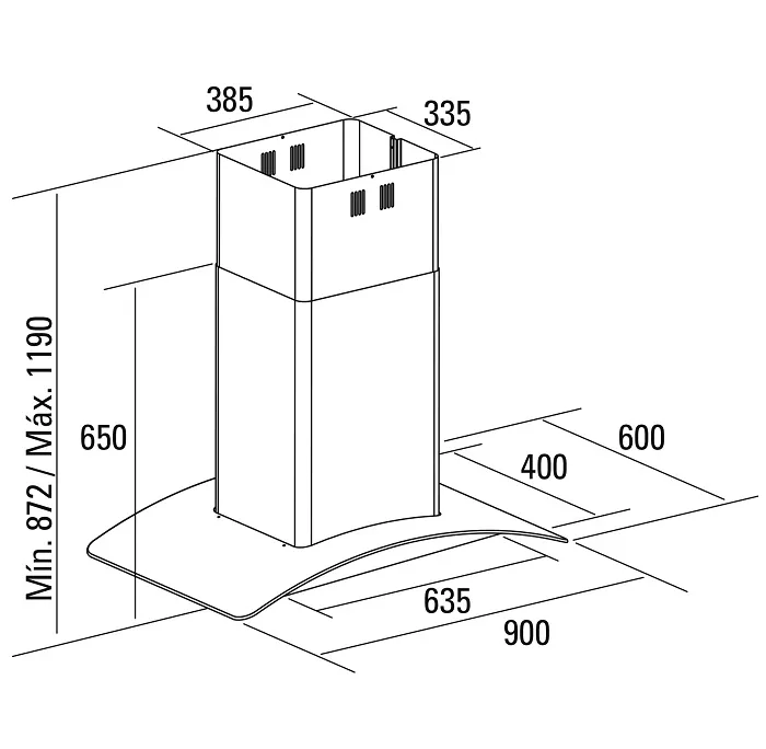 Cata Isla Gamma Glass/X LED sziget páraelszívó, 90 cm, 850 m³/h, elektronikus vezérlés, utószellőztetés
