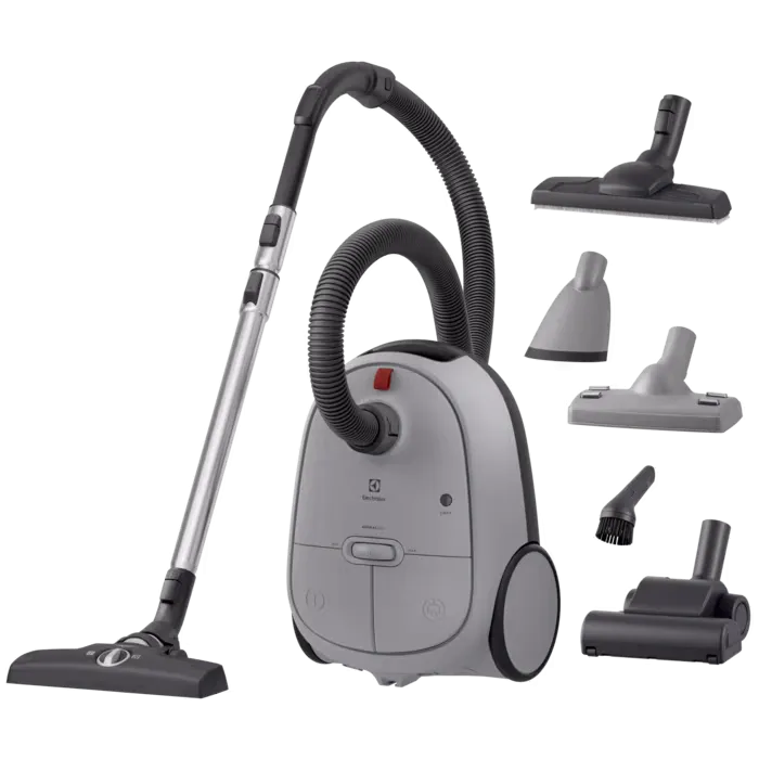 Electrolux EB61A5UG porzsákos porszívó, szürke, S-bag®, DustMagnet Silent szívófej, ParkettoPro szívófej, mosható Hygenie filter, 750 W (2 év jótállás fogyasztónak)