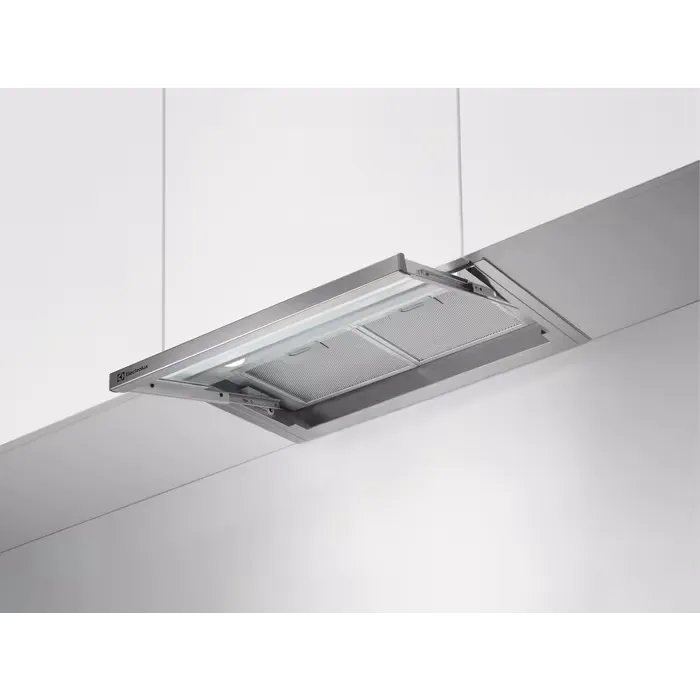 Electrolux LFP536X beépíthető teleszkópos páraelszívó, rozsdamentes acél, 60 cm, 600 m3/óra, felső szekrénybe építhető, 2 zsírszűrő, kihúzható üveglap (2 év jótállás fogyasztónak)