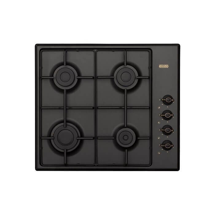 Evido RUSTIC-H 60A beépíthető gázfőzőlap, 60 cm, 4 gázégő, oldalgombos vezérlés, szikragyújtás, zománcozott edénytartók (3 év jótállás fogyasztónak)