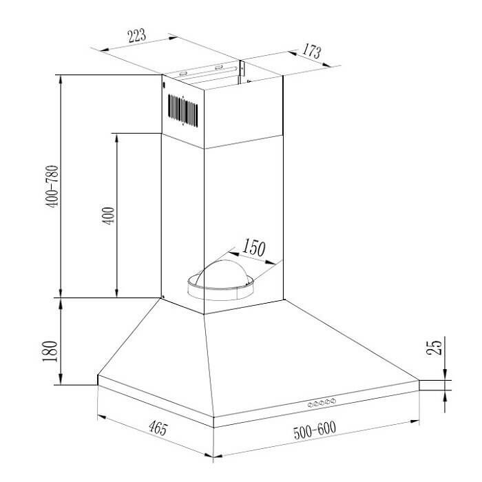 Evido Tricol 60W fali kürtős páraelszívó jellemzői