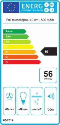 Falmec MIRA TELESCOPICA fali kürtős páraelszívó, inox, 40 cm, 590 m3/h, elektronikus vezérlés, LED