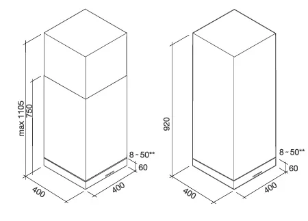 -külső motorral is rendelhető (külső motoros páraelszívó rendszer vásárlása esetén a páraelszívó ernyő nem tartalmazza a belső motort, a külső motor extra felár típustól függően)