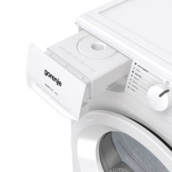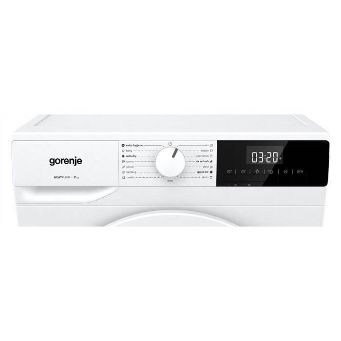 Gorenje DHNE7D hőszivattyús szárítógép, 7 kg, LED kijelző, TwinAir, AirRefresh, gyűrődésmentesítés, RainDrop továbbfejlesztett dob (3 év jótállás fogyasztónak)