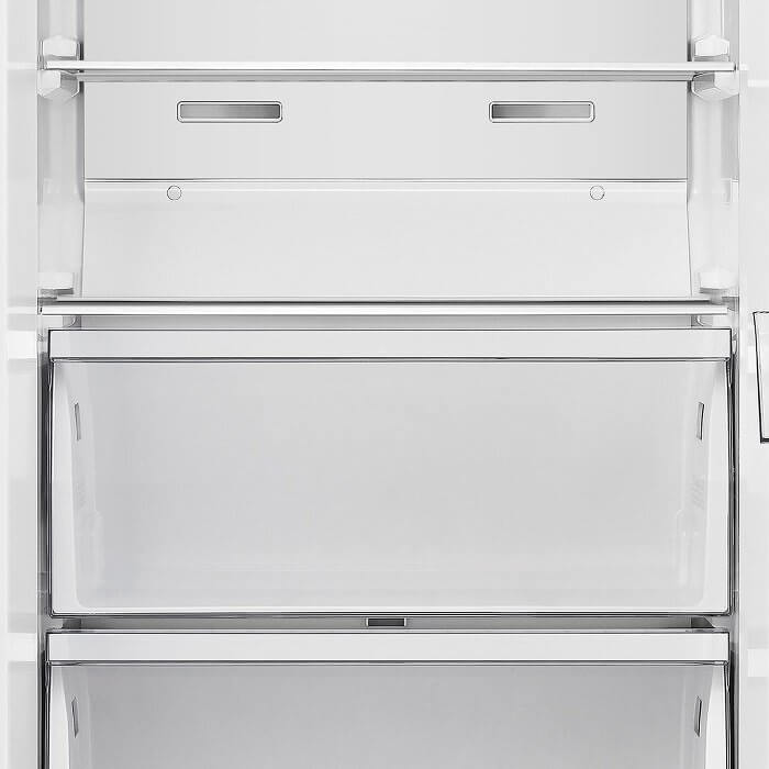 -NoFrost technológia: az intenzív hideg levegő keringtetés megszünteti a nedvességet, ezáltal nem keletkezik jég sem az élelmiszerek felületén, sem a készülék belső falain