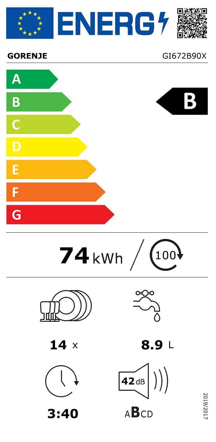 Gorenje GI672B90X beépíthető mosogatógép, 60 cm, kezelőpaneles, 14 teríték, 7 program, Wi-Fi, TotlaDry , SelfCleaning, 42 dB(A) (3 év jótállás fogyasztónak)