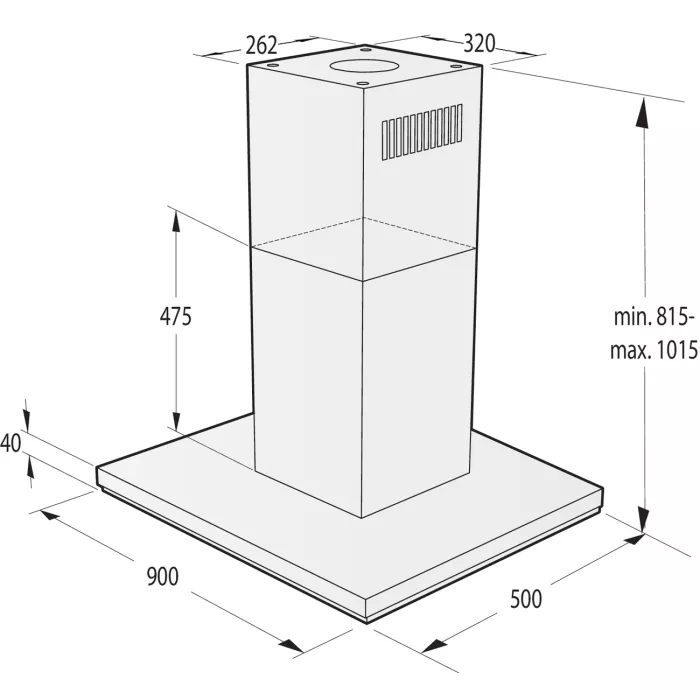 -Kivezetett üzemmód: a légtechnikai rendszer teljes hossza rendelkezzen azzal az áteresztő képességgel (megfelelő keresztmetszettel) amelyet a páraelszívó gyári csatlakozó csonka meghatároz. A nyomvonal kialakításánál a lehető legrövidebb, szűkítés-mentes útvonal kialakítása javasolt.