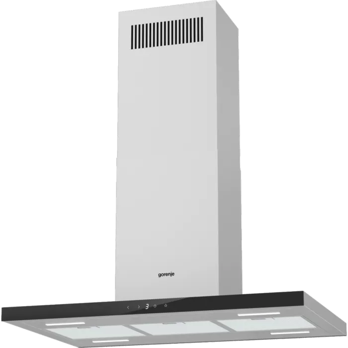 Gorenje IHT943E6XGB sziget páraelszívó, inox, 90 cm, 675 m3/óra, Touch on Glass érintőkijelző, PowerBoost fokozat, LED világítás (3 év jótállás fogyasztónak)