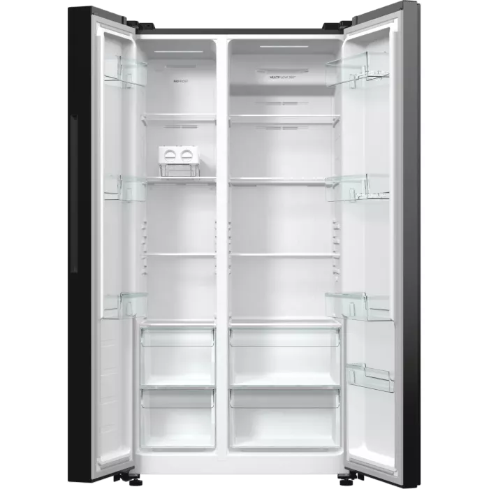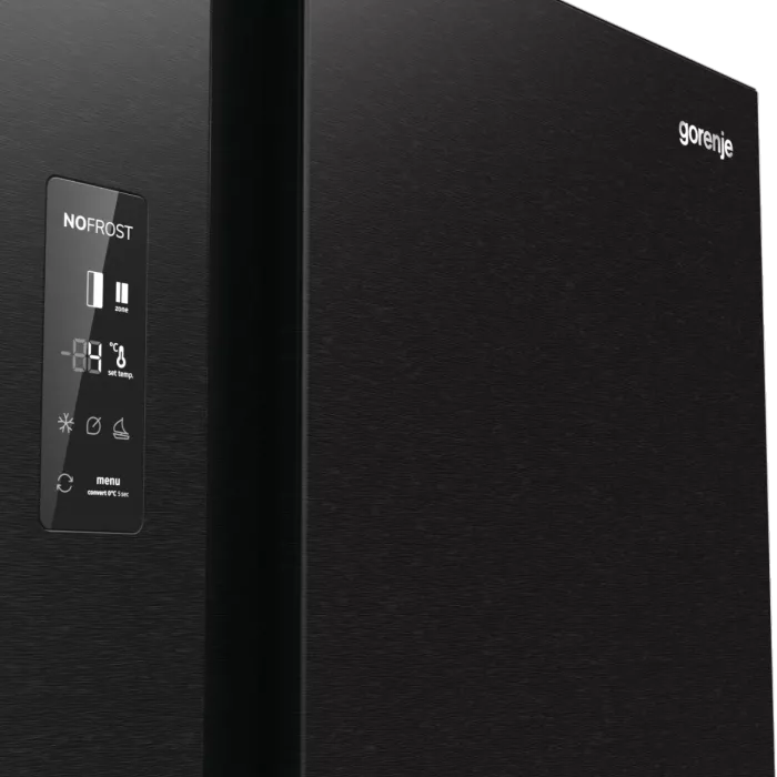 Gorenje NRR9185EABXL side-by-side hűtőszekrény, fekete, NoFrost, inverteres, MultiFlow, TwistIce jégtálca , 178,6 cm, 358/192 l (3 év jótállás fogyasztónak)