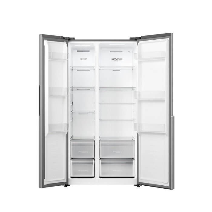 • Gorenje NRS917E41X side-by-side hűtőszekrény, szürke, nofrost, inverteres, multiflow 360, fastfreeze, supercool, 178,6 cm, 347/197 l, crispzone