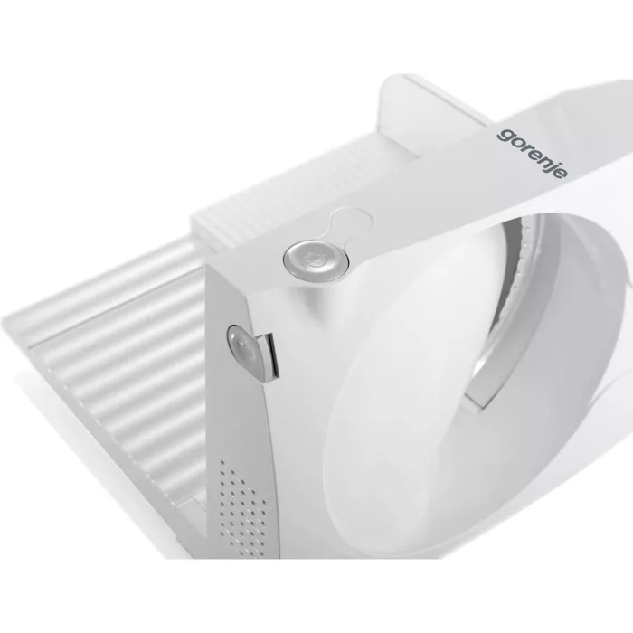 Gorenje R401W szeletelőgép, fehér, 17 cm átmérőjű Solingen márkájú penge, 0-17 mm vágásszélesség