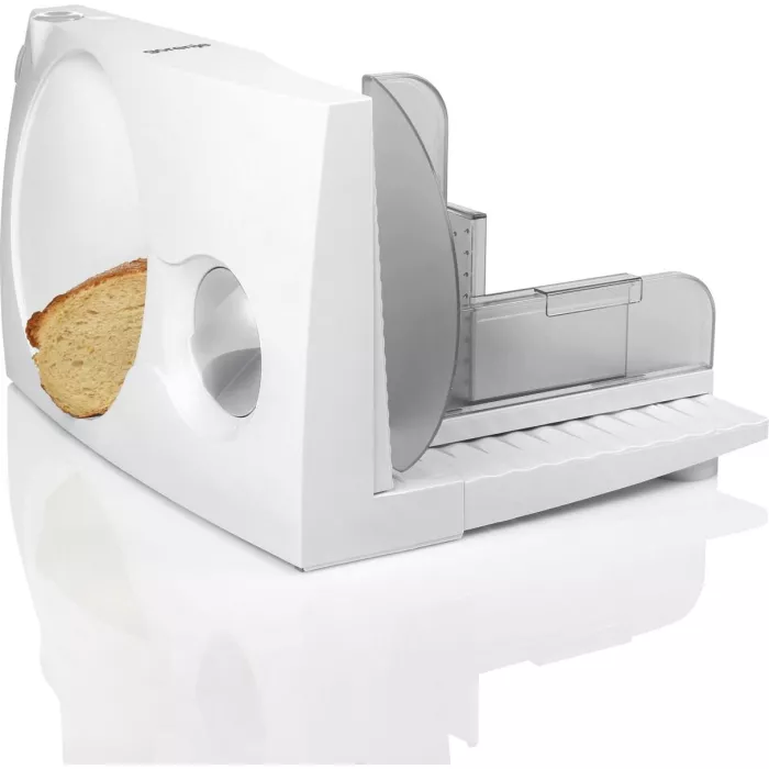 Gorenje R401W szeletelőgép, fehér, 17 cm átmérőjű Solingen márkájú penge, 0-17 mm vágásszélesség, 100 W (2 év jótállás fogyasztónak)