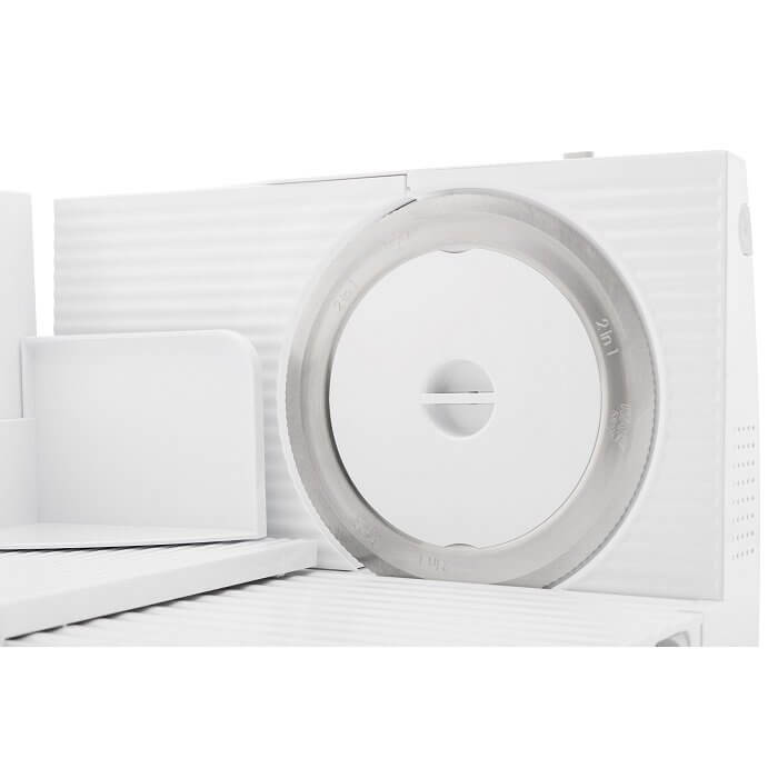 Gorenje R402W szeletelőgép, fehér, 17 cm átmérőjű Solingen márkájú penge, 0-17 mm vágásszélesség