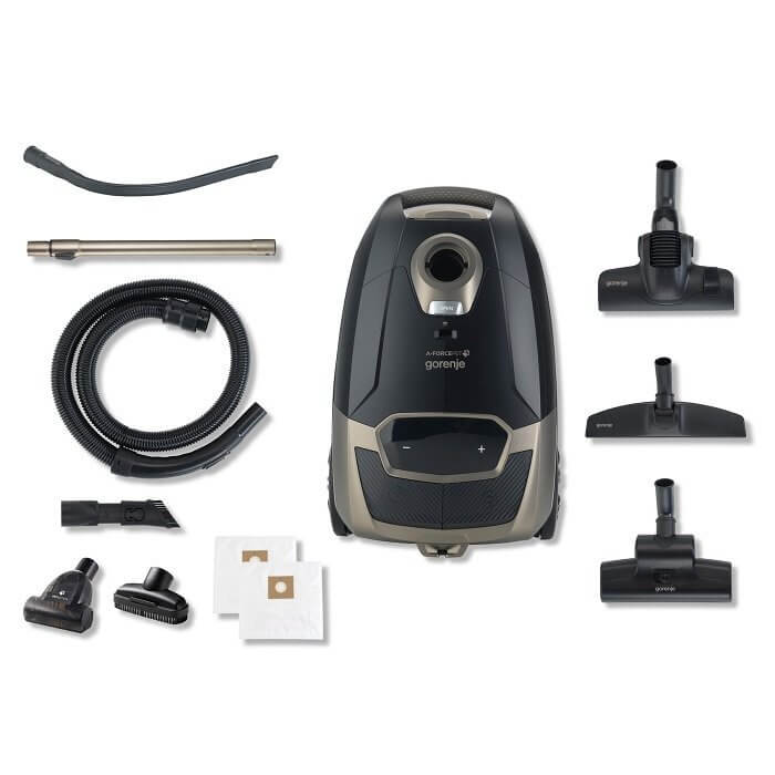 • Gorenje VCE48AFBKGO porzsákos porszívó, fekete, turbókefe, hepa szűrő, 7 szívófej, led kijelző, ultra silent, pet edition, 890 w