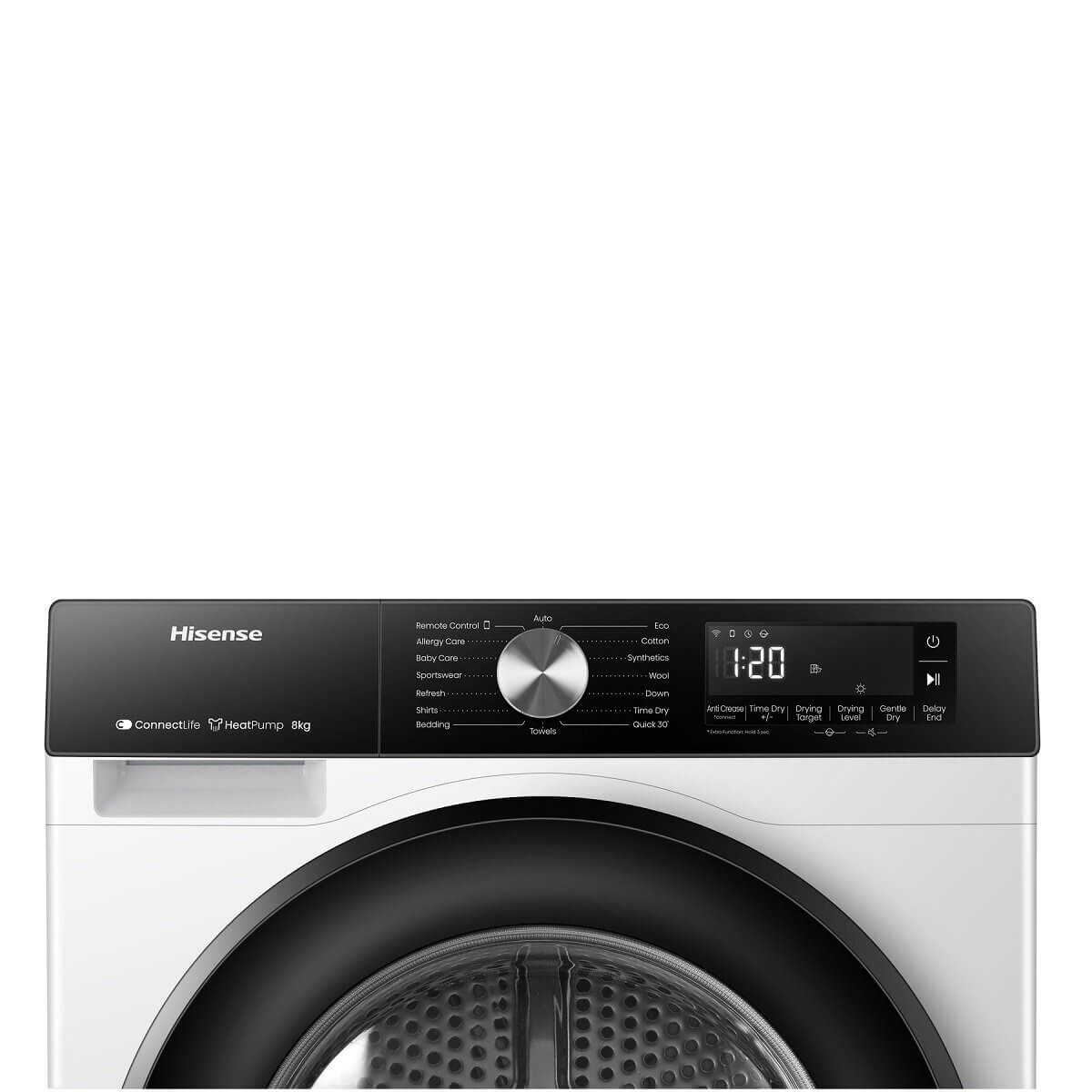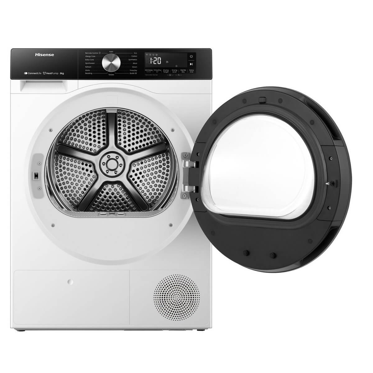 Hisense DH3S802BW3 hőszivattyús szárítógép, 8kg, WIFI, TwinFlow, gyorsprogram, inverter motor, gyűrődésmentesítés, AirRefresh, LED (3 év jótállás fogyasztónak)