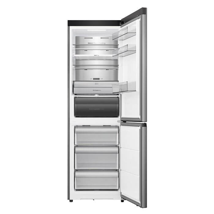 Hisense RB3K330SAIE alulfagyasztós kombinált hűtőszekrény, inoxlook, TotalNoFrost, 185,6cm, 215/115 l, WIFI , Multi Air Flow, MetalCooling, gyorsfagyasztás (3 év jótállás fogyasztónak)