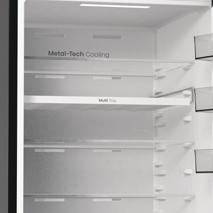 -MetalCooling - hátsó fal rozsdamentes acéllal van borítva, ami biztosítja a hűvös levegő egyenletes eloszlását belülről kifelé, a fejlett technológiáknak ez a kombinációja mindenkor ideális hőmérsékletet és páratartalmat biztosít