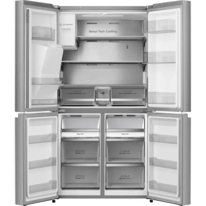Hisense RQ760N4SASE MultiDoor hűtőszekrény, inoxlook, NoFrost, Multi Air Flow, Víz- és jégadagoló, Wi-Fi , 178.5 cm, 352/232 l (3 év jótállás fogyasztónak)