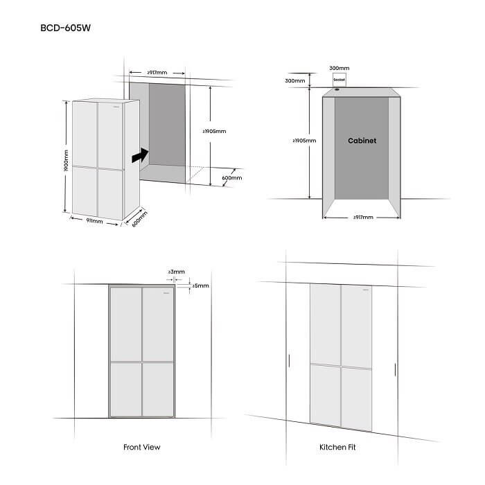 -KitchenFit: a 60 cm készülék mélységével illeszkedik a konyhabútorba, a továbbfejlesztett zsanérkialakítás, több mint 100 fokos ajtónyitást biztosít mindössze 3 mm-es rés mellett