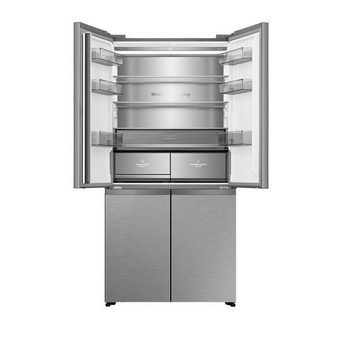 Hisense RQ768N4GVE MultiDoor hűtőszekrény, inox, NoFrost, Multi Air Flow, 190 cm, 381/210 l, LED világítás , gyors hűtés, gyors fagyasztás (3 év jótállás fogyasztónak)
