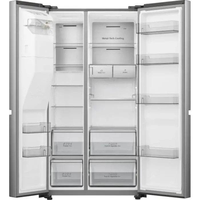 Hisense RS818N4TIC side-by-side hűtőszekrény, szürke, NoFrost, Multi Air Flow System, jég- és vízadagoló , SuperCool, Wi-Fi, 179 cm, 417/215 l (3 év jótállás fogyasztónak)